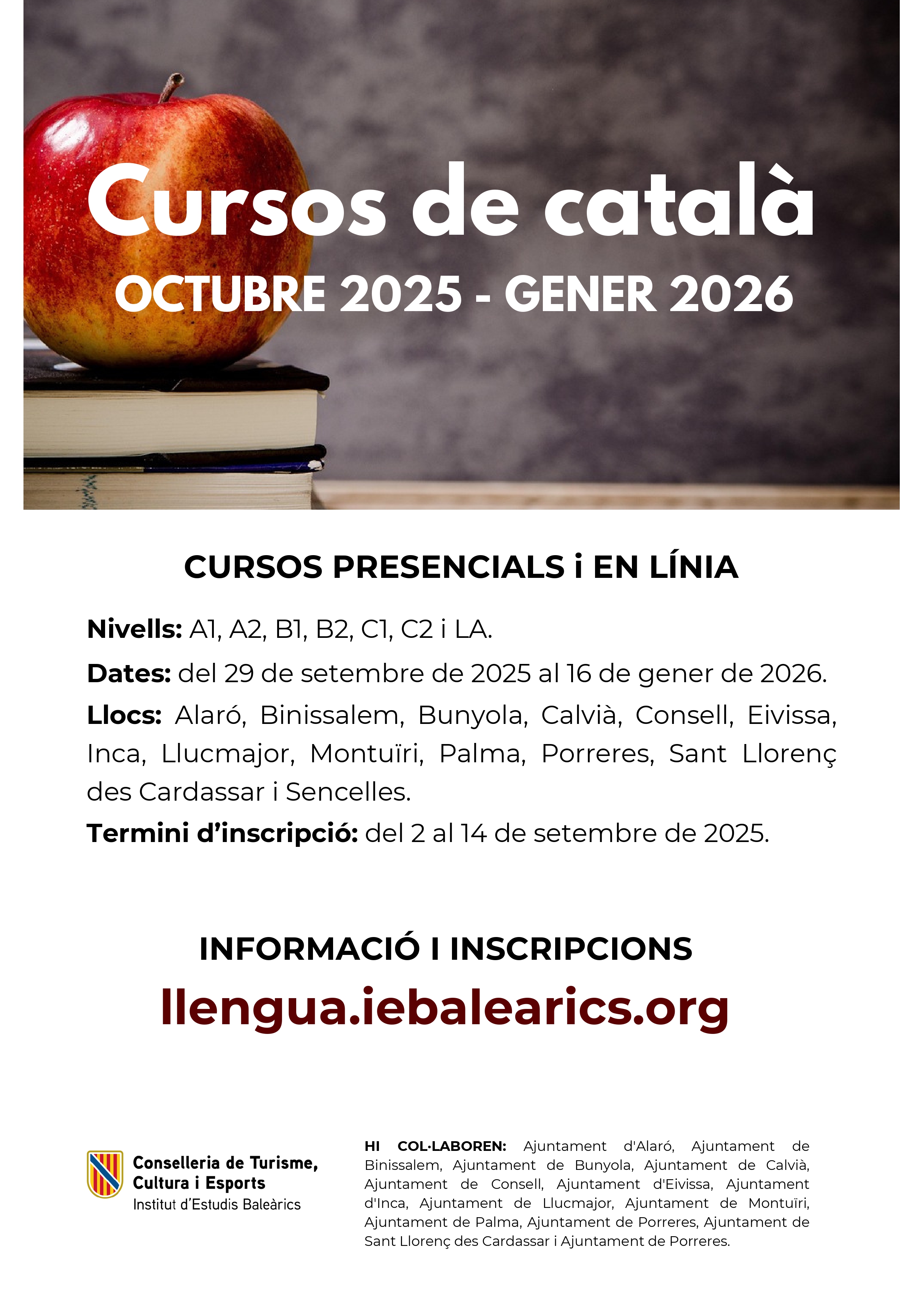 Recordau que el termini d'inscripció és del 2 al 14 de setembre i que han de fer la inscripció i la prova de nivell (si els fa falta) a través del web llengua.iebalearics.org.