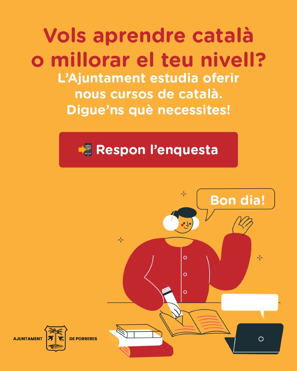 Vols aprendre català o millorar el teu nivell? A l’Ajuntament de Porreres estam valorant oferir nous cursos de català, però abans, volem escoltar-te!