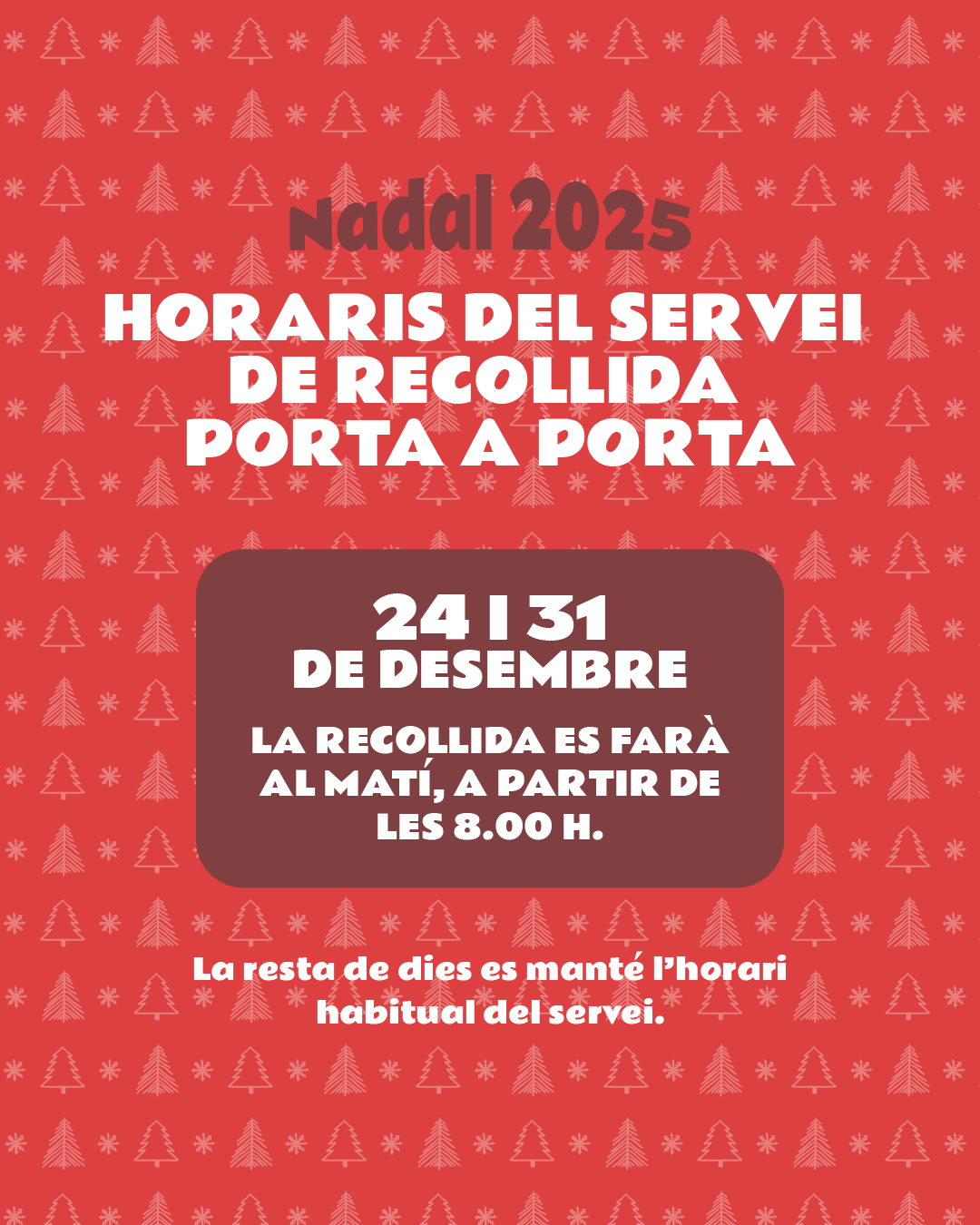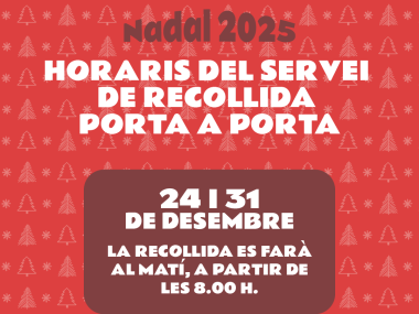Horaris del servei de recollida porta a porta – Nadal 2025