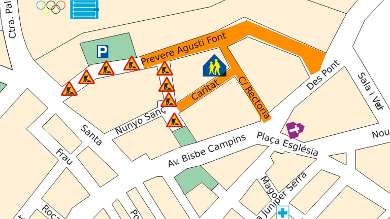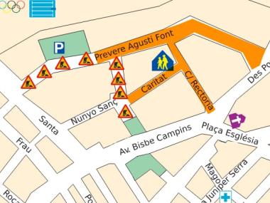 Les obres s'iniciaran, en una primera fase, de la cantonada del Bar de Can Guillem fins al Cr. Caritat i en una segona fase del Cr. Caritat fins en el Cr. Prevere Agustí Font. L'empresa constructora anirà donant i restringint l'accés així com avancin les obres.