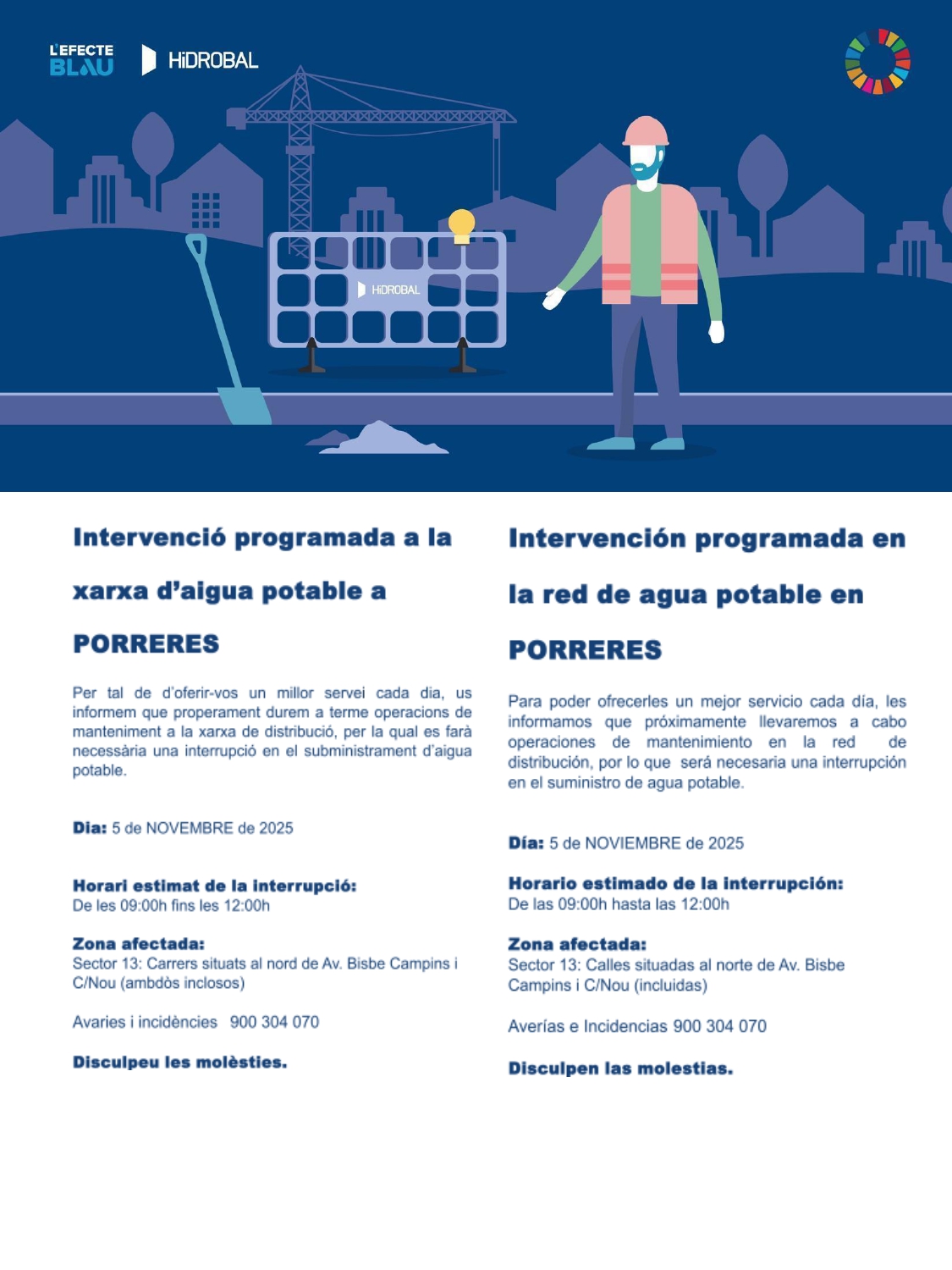 Intervenció programada a la xarxa d'aigua potable a Porreres