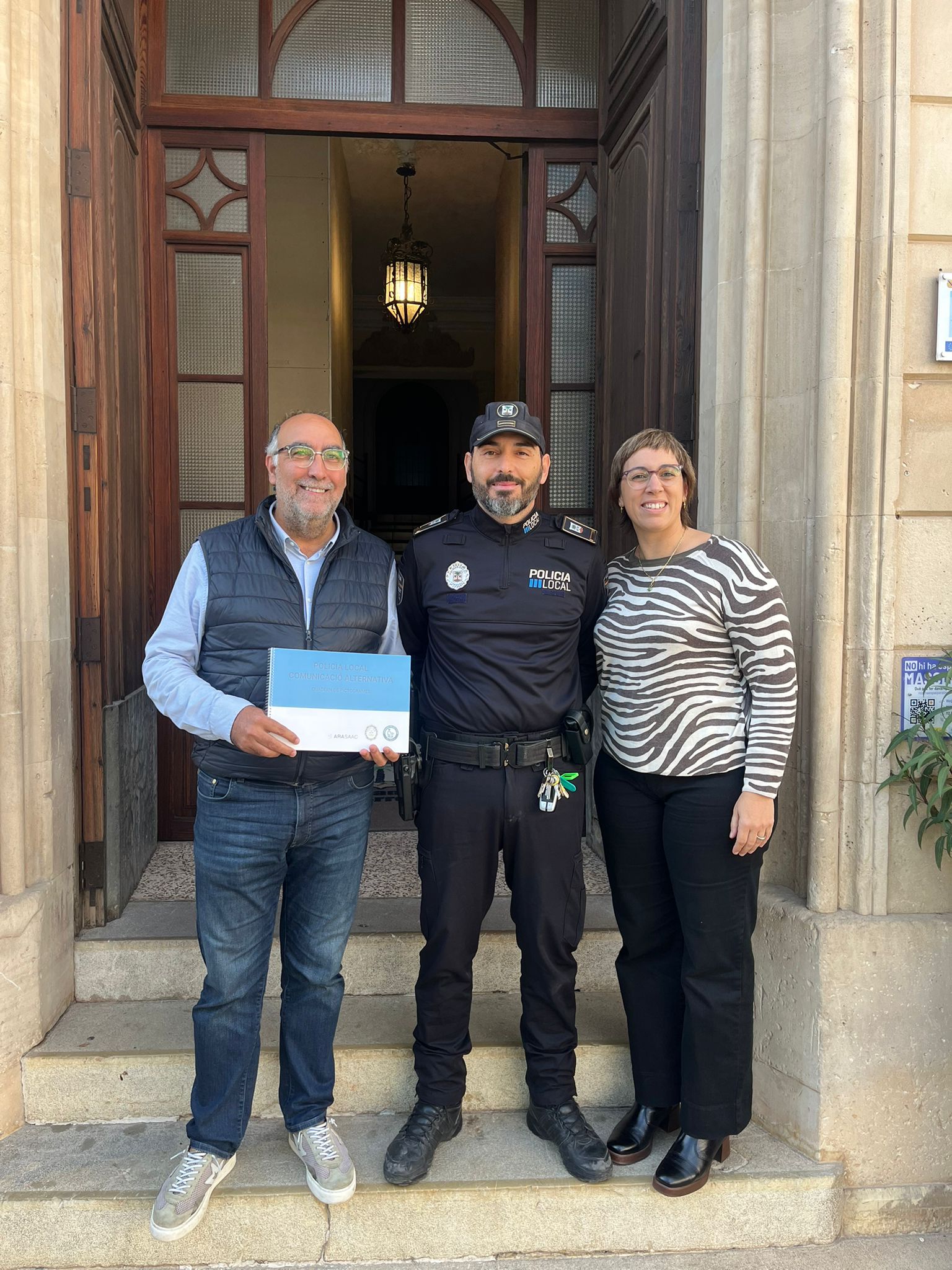 Des de la regidoria de Benestar Social i la regidoria d’Interior s’ha volgut reconèixer la tasca del policia tutor Pedro José González, que juntament amb l’especialista d’educació especial Elena Bernat han elaborat un quadern de comunicació innovador.