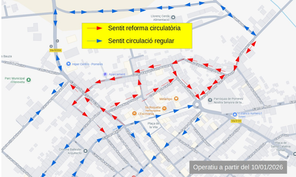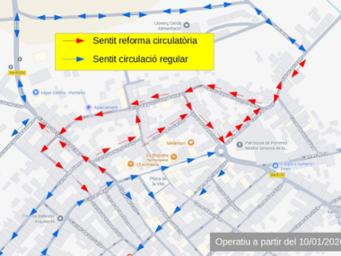 A partir del 10 de gener, i un cop finalitzades les obres de reforma i d’eliminació de barreres arquitectòniques als carrers Santa Creu, Prevere Agustí Font i Hospital, s’implantarà una nova ordenació del sentit de circulació.