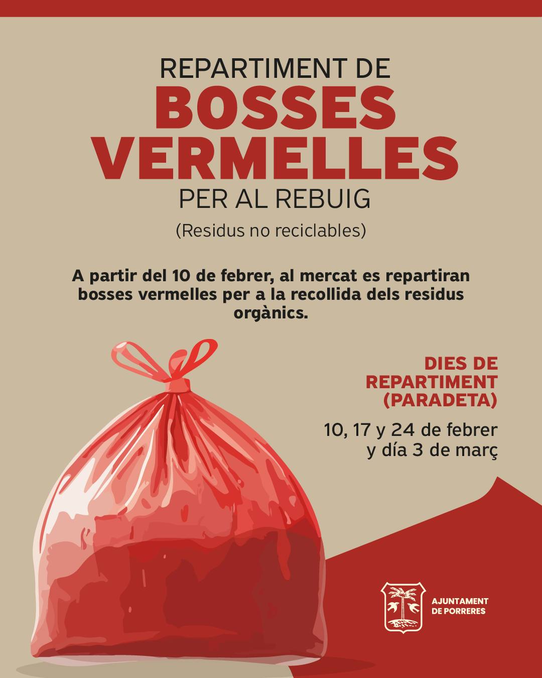 Informam que, a partir del dia 10 de febrer, es durà a terme el repartiment de les bosses vermelles al mercat.